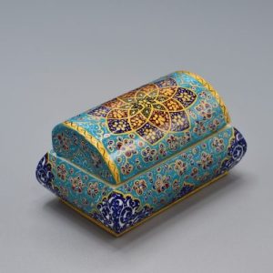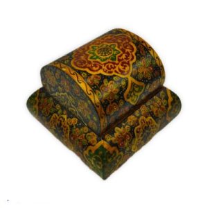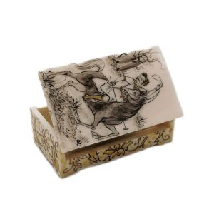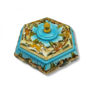 Hexagonal camel bone jewelry box with tazhib design