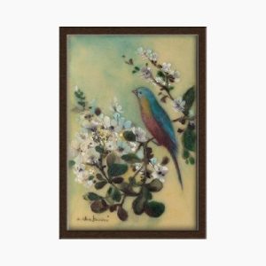 Miniature painting on camel bone – Qajari Flower and Bird design