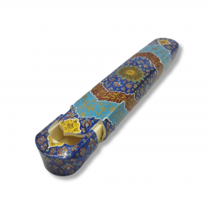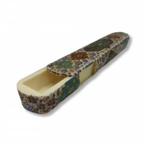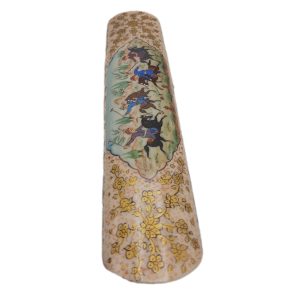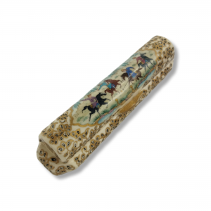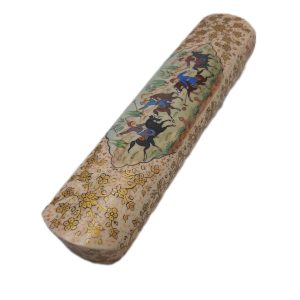 A 25 cm long bone pen case adorned with beautiful floral and bird motifs from the Qajar era. This pen case, handcrafted by Isfahan artists, is a blend of traditional Iranian miniature painting and bone craftsmanship, offering both functionality and an elegant, authentic aesthetic. Suitable as a gift or for personal use.