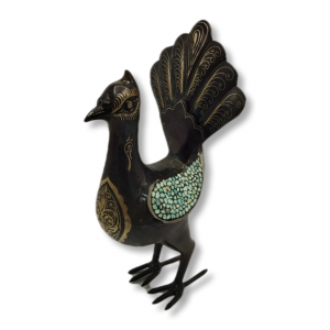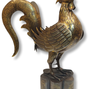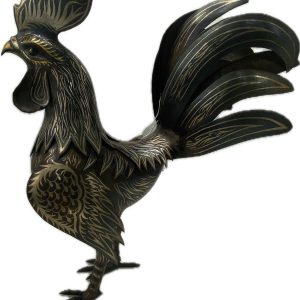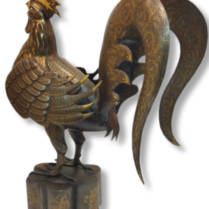steel rooster statue with gold inlay – code:1000113