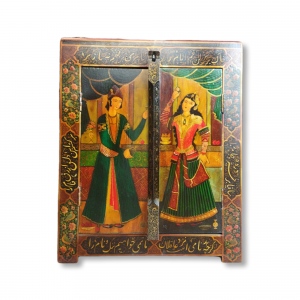 Painted Walnut Wood KharakDepiction: Portraits of a Safavid Lady and Gentleman