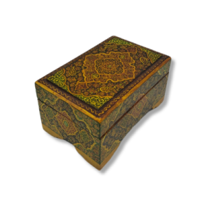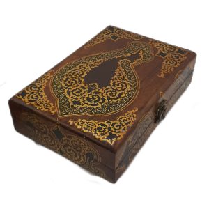 Walnut wood jewelry box, adorned with traditional miniature painting in Tazhib (illumination) style.