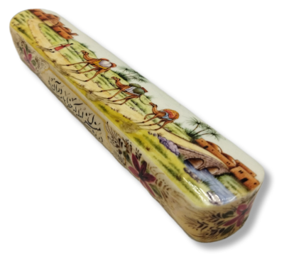 A beautiful handcrafted bone object, delicately decorated with traditional Iranian designs by skilled artisans from Isfahan. Bone painting is an ancient art form in which artists create detailed and refined motifs on bone surfaces, transforming each piece into a unique and lasting work of art. These objects, whether used functionally or decoratively, reflect a rich cultural heritage and can serve as meaningful and timeless selections for collectors and art enthusiasts alike.