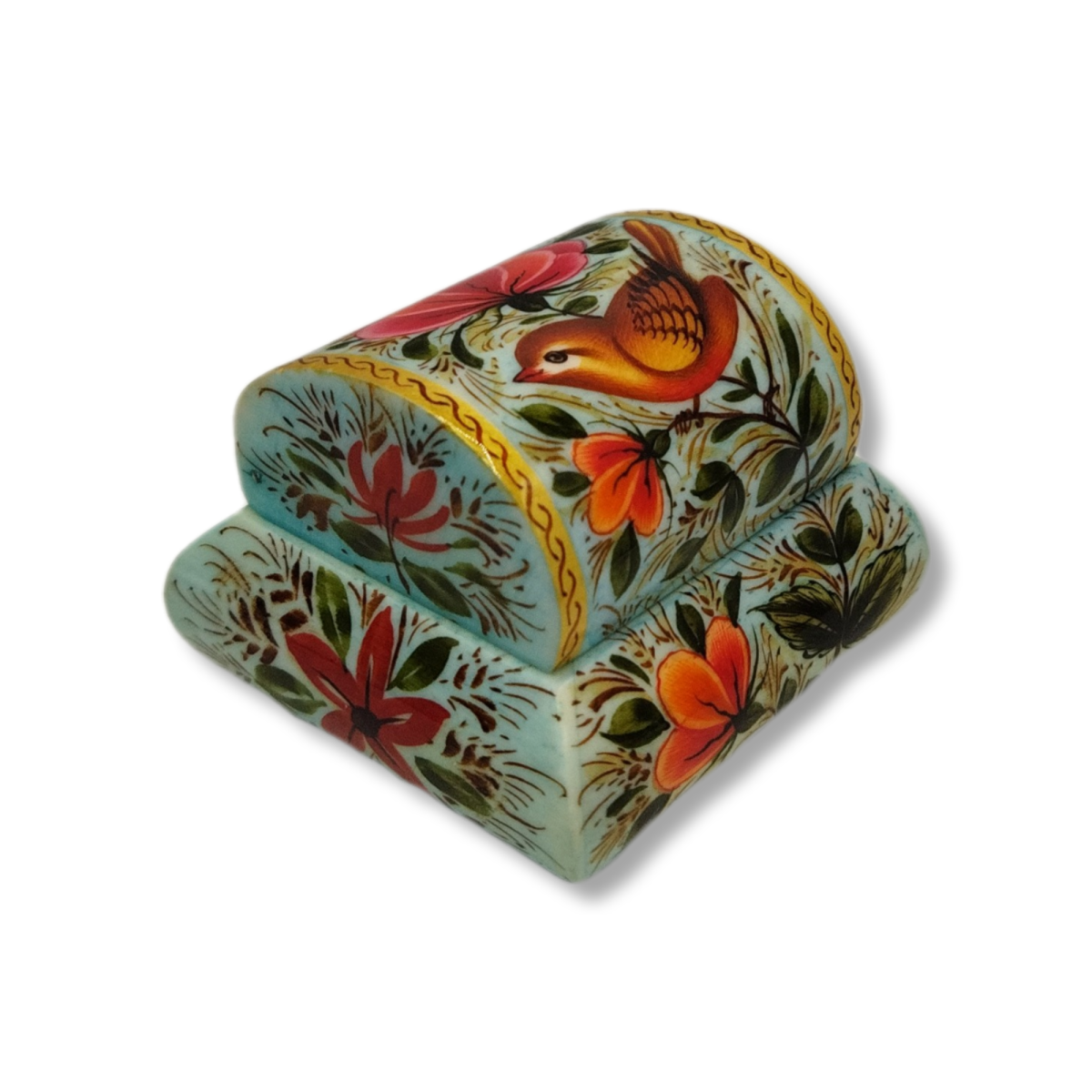 Jewelry has long been used by all people, especially women, for adornment and holds great value for them. Therefore, we should place these items in a proper and beautiful box to not only preserve them but also maintain their value and beauty. The art of crafting bone handicrafts has existed in Iran since ancient times. This art has been mostly practiced by artists from Isfahan. Making bone boxes is one of the authentic arts in Iran, which is enhanced by artistic painting on these bones. Painting on bone is also a common art in this field. The artists of Isfahan decorate and color these bone boxes to create an exceptional beauty in them.