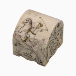 Miniature camel bone jewelry box with hand-drawn Rider and Hunting design