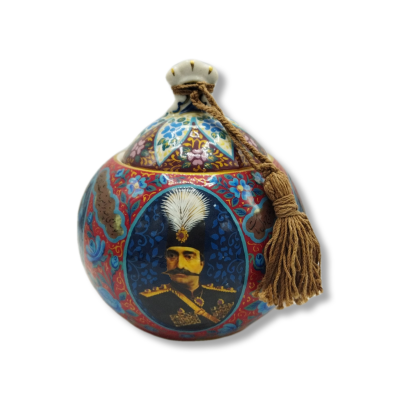 Ceramic sugar bowl (Portrait of Naser al-Din Shah and Qajar Girl design)