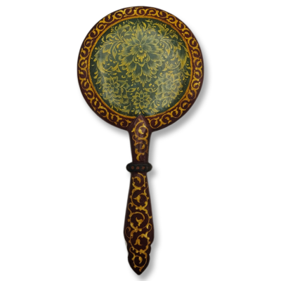 Hand mirror made of walnut wood (adorned with Tazhib and Islamic motifs)