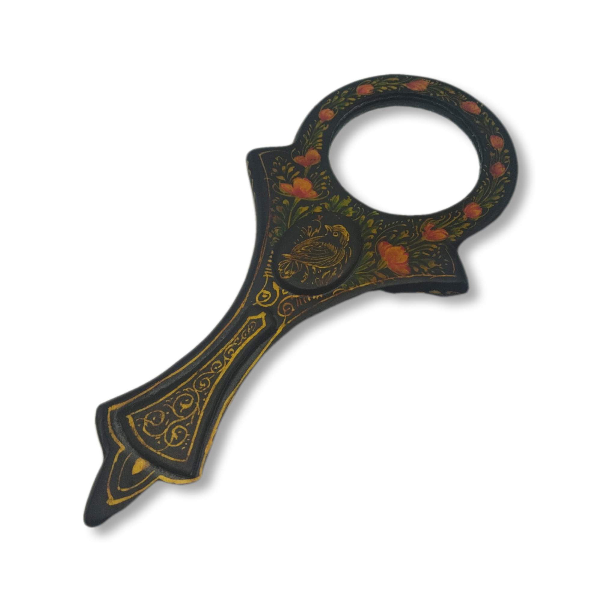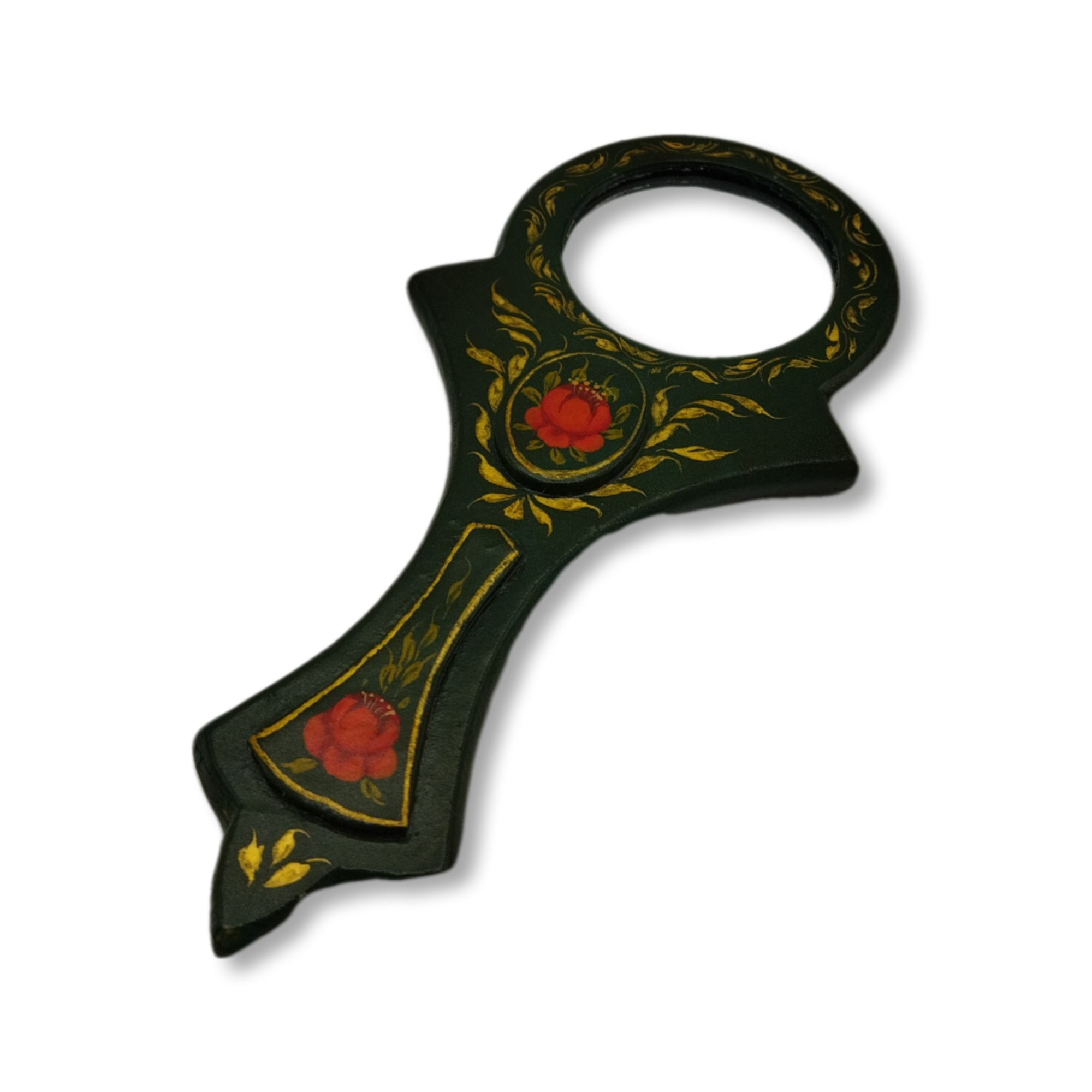 Aged papier-mâché handheld mirror – Painting design (Flower and Bird)