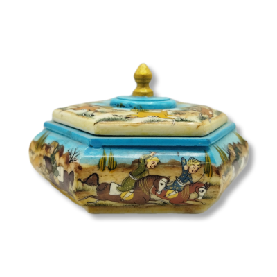A beautiful handcrafted bone object, delicately decorated with traditional Iranian designs by skilled artisans from Isfahan. Bone painting is an ancient art form in which artists create detailed and refined motifs on bone surfaces, transforming each piece into a unique and lasting work of art. These objects, whether used functionally or decoratively, reflect a rich cultural heritage and can serve as meaningful and timeless selections for collectors and art enthusiasts alike.