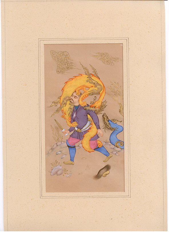 The term Negargari (Persian miniature painting) refers to various styles of Iranian painting developed across different historical periods. This refined and intricate form of art could be part of a larger artistic creation, such as book illustrations or decorative and functional items, and may incorporate techniques like Gol-o-Morgh (flowers and birds), Tazhib (illumination), and Tash’ir (marginal ornamentation). Alternatively, it can appear as an independent artwork on canvases, albums (Moragha’), or murals.