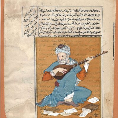 Miniature painting on antique manuscript paper — Painting design (“Old Man with Setar”)