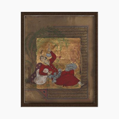 Miniature painting on antique paper with gold leaf — Painting design (“Safavid”)