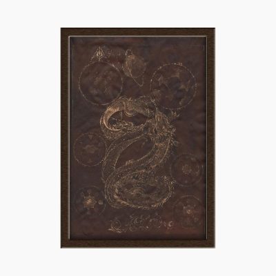 Miniature painting on antiqued paper – Painting design (Battle of the Dragon and the Goat)