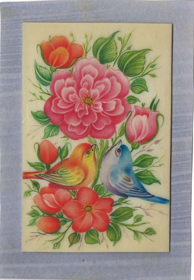 Miniature painting on camel bone fiber – Painting design (Flower and Bird)