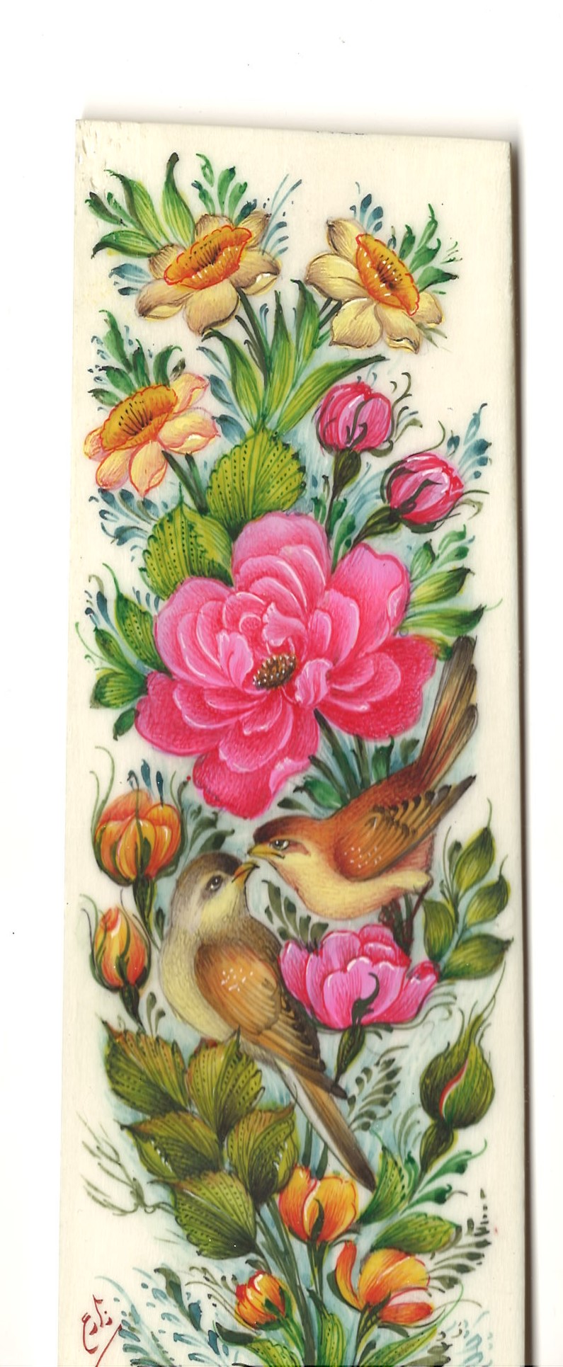 Miniature painting on camel bone – bird and flower design – Code 1010178