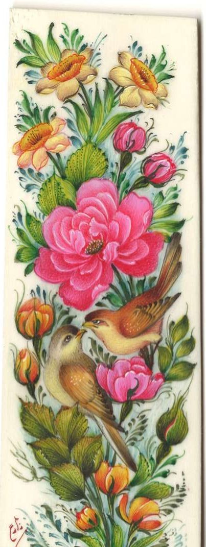 Miniature painting on camel bone – Qajari Flower and Bird design
