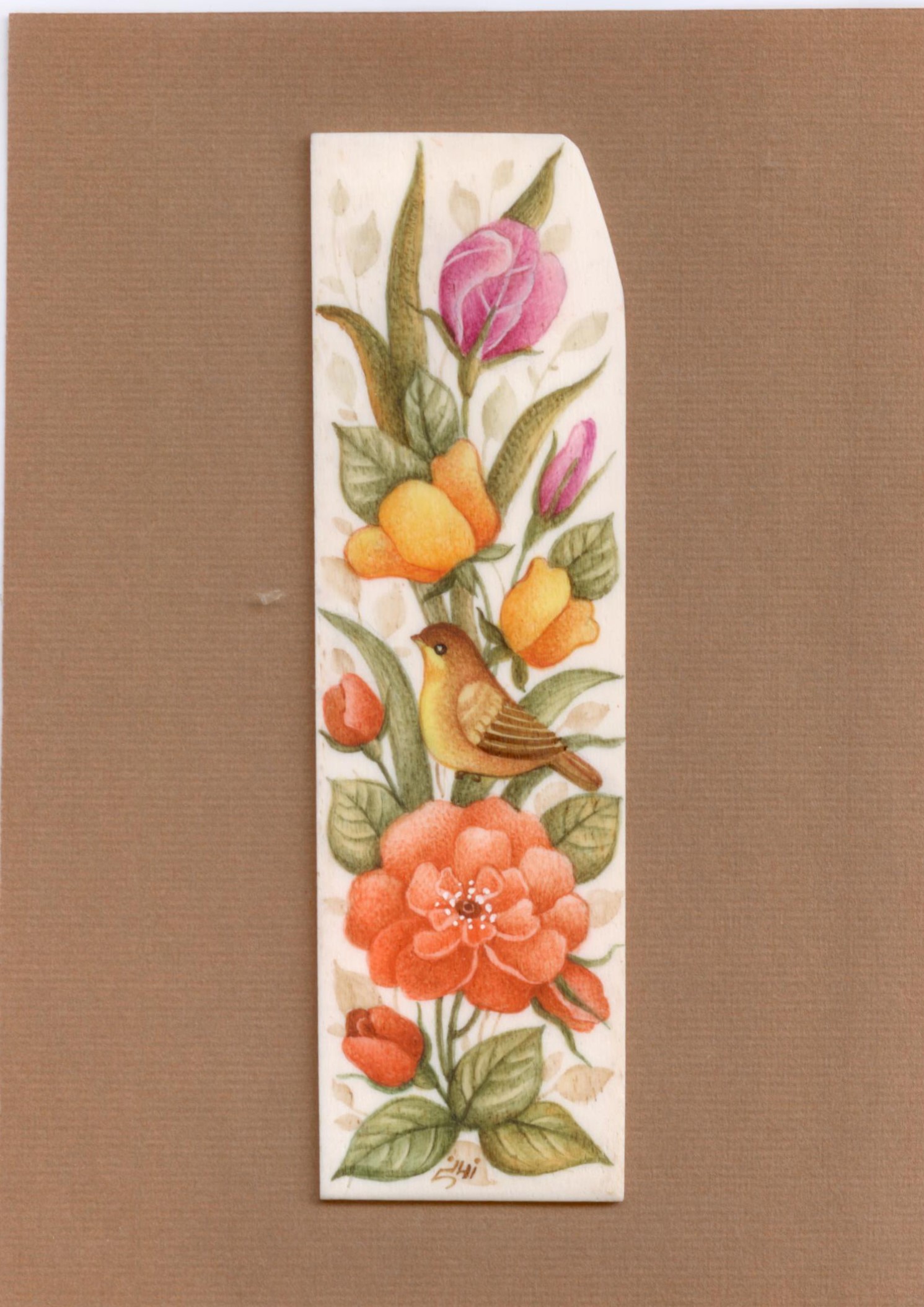 Miniature painting on camel bone – Flower and Bird design – Code 1010202