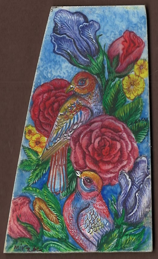 Miniature painting on camel bone- gol-o-morgh