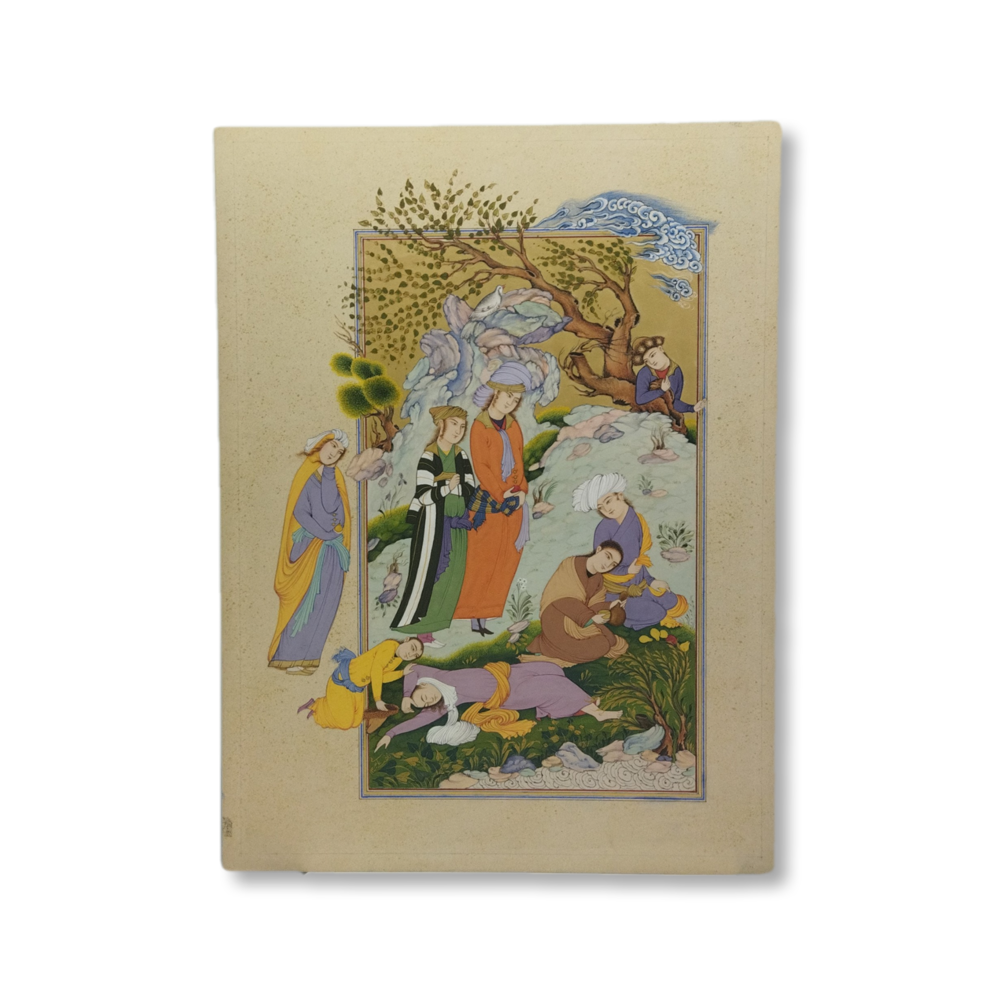 Miniature painting on cardboard — Painting design (“Safavid Style – Royal Princes’ Gathering in the Garden”)
