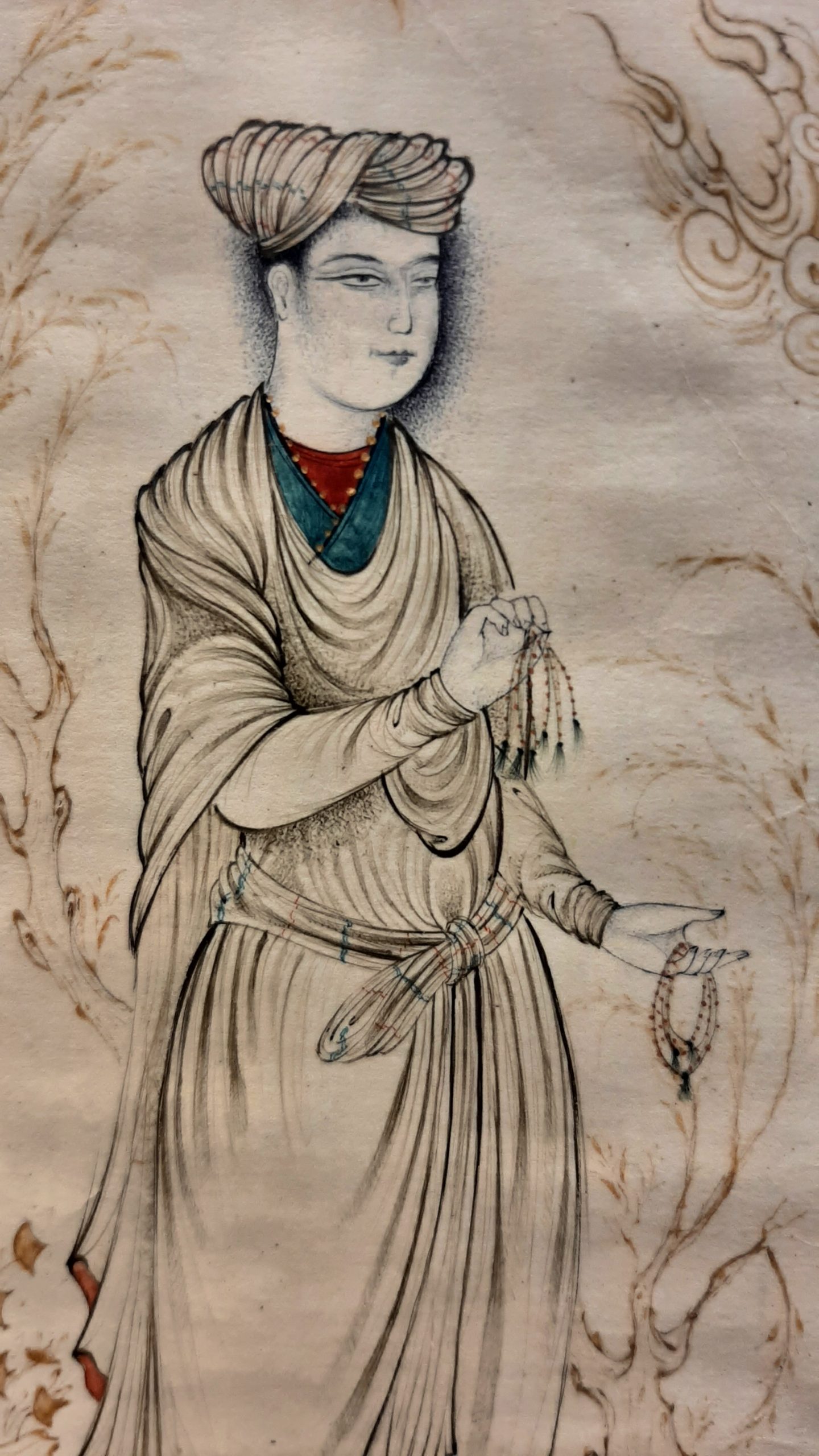 Miniature painting on paper – Design: “Arif Holding Prayer Beads”