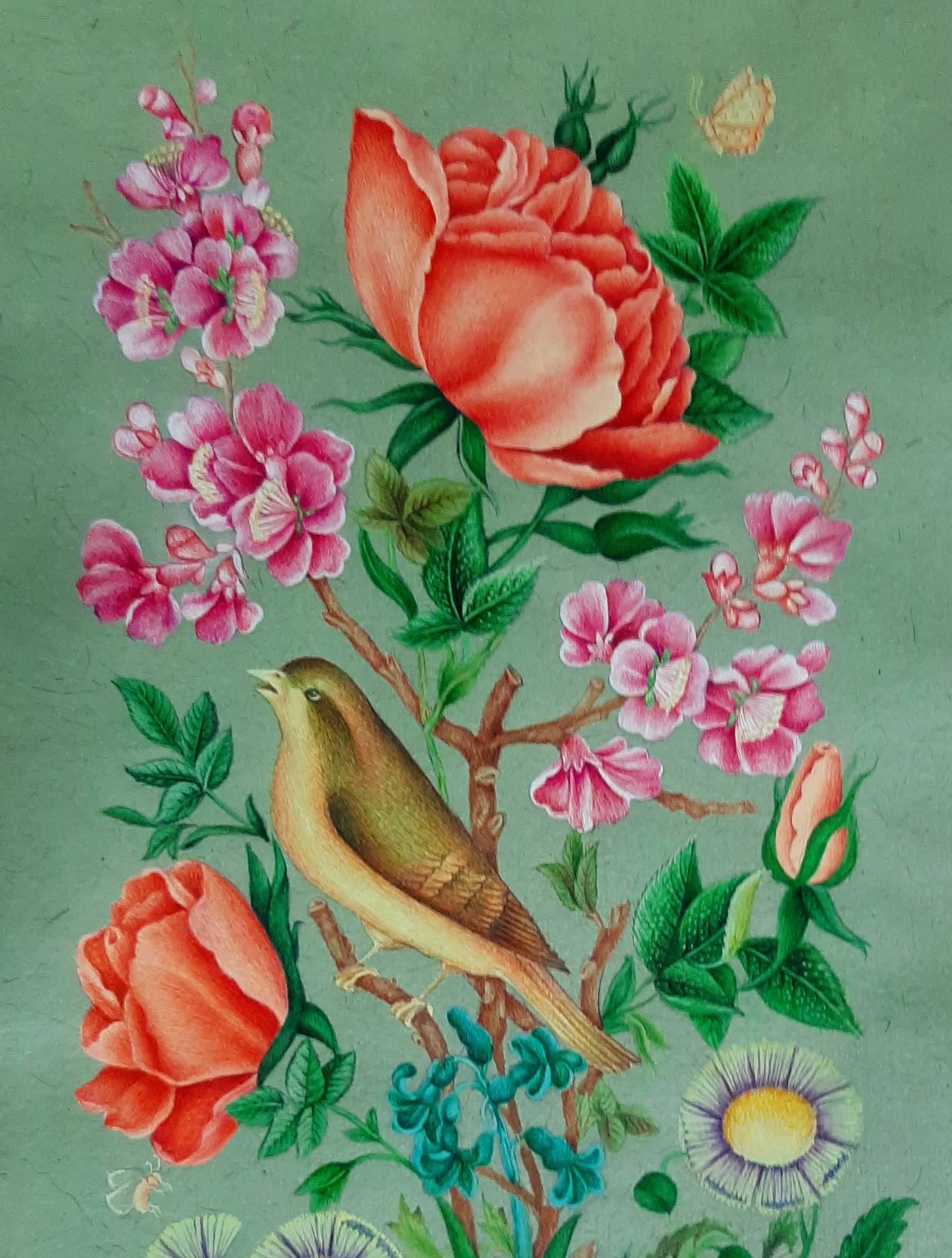 Miniature Painting on Paper – Painting Design (Flower and Bird)