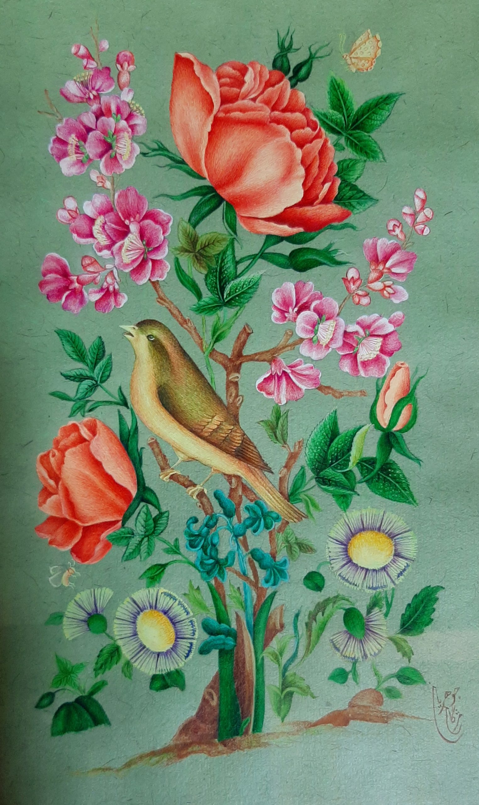 Miniature Painting on Paper – Painting Design (Flower and Bird)