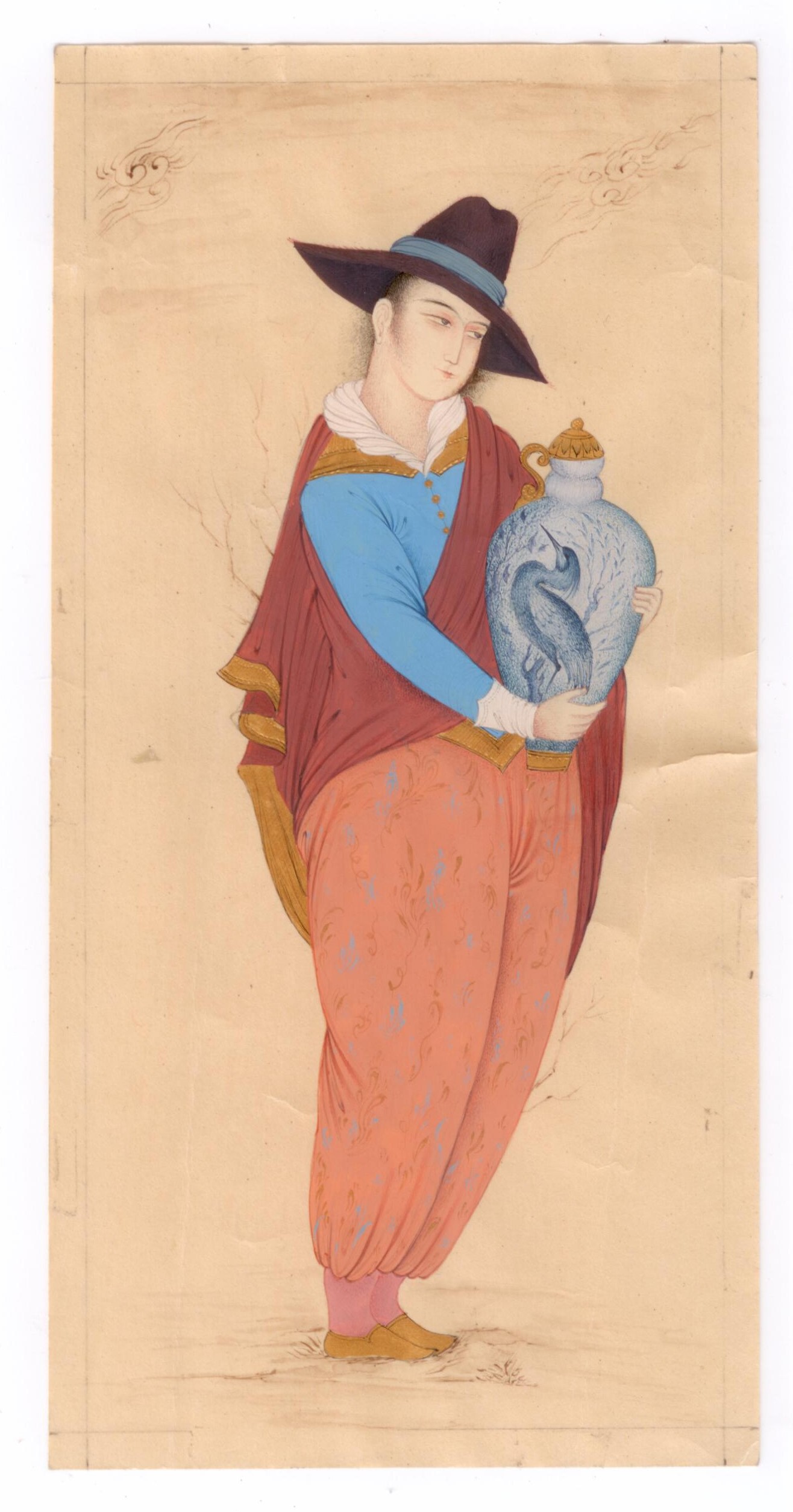 Miniature painting on paper, Safavid style design (Lady Holding a Vase)