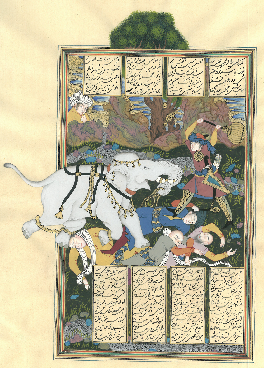 Miniature painting on paper depicting the scene from the story of Ababil.