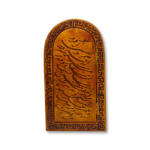 Door mirror made of aged papier-mâché, featuring painting design with Nastaliq script and conceptual lines.