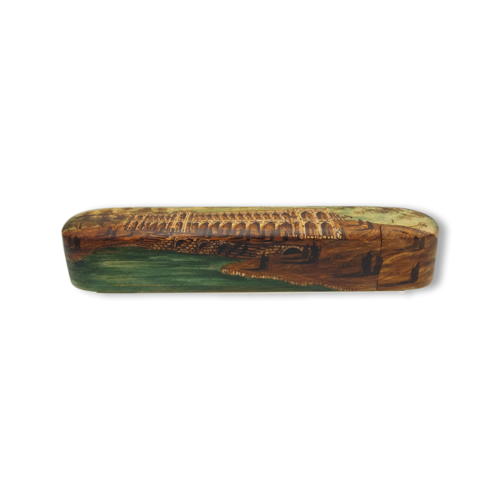 Antiqued walnut wood pen case – Painting design (Esfahan Bridge)