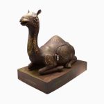 a hand-forged steel camel, embellished with silver inlay and gold wash