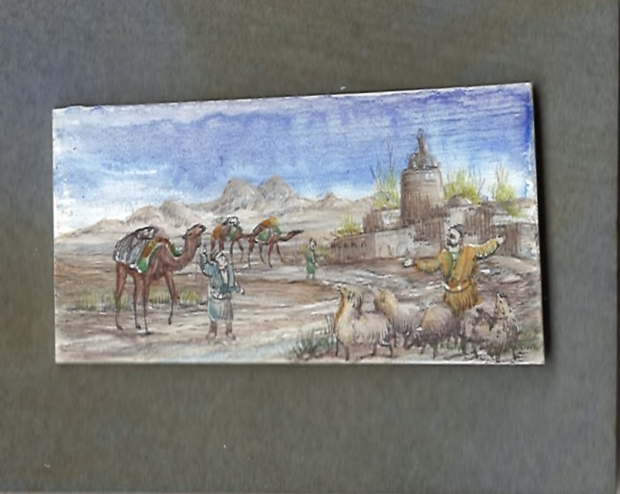 Small miniature painting on camel bone