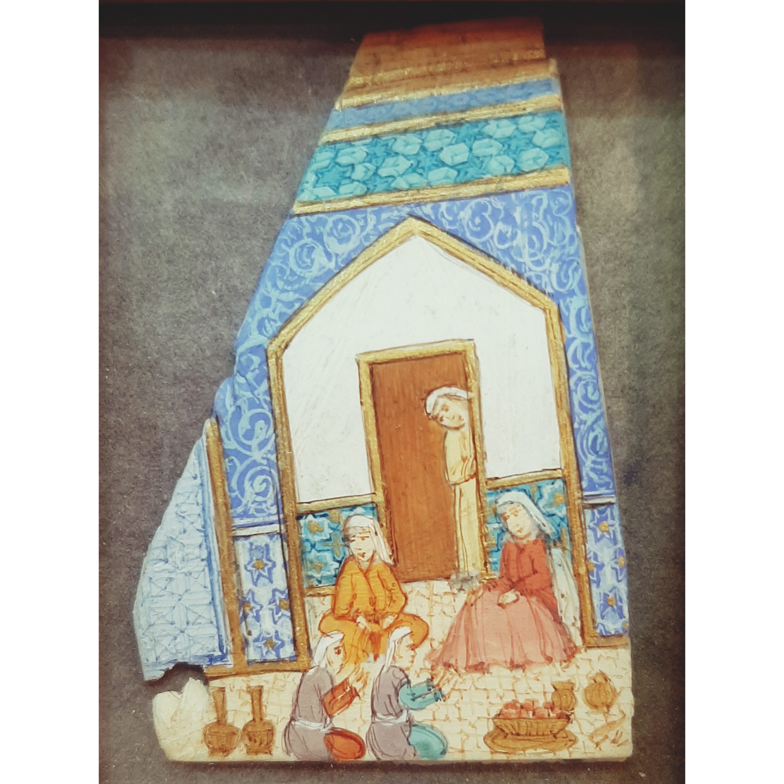 Small Miniature Painting on Camel Bone Featuring the Ladies’ Gathering Design