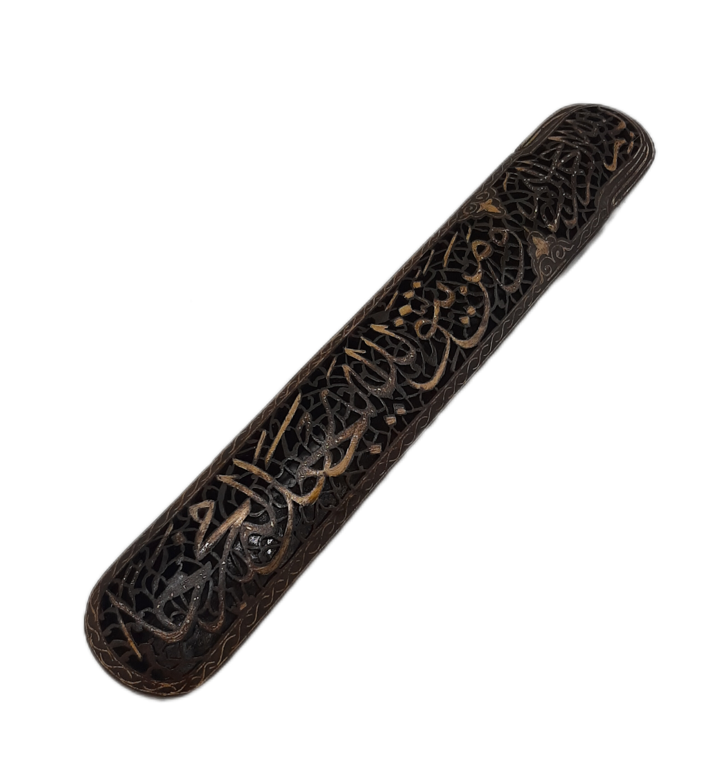 Pen Case with Quranic Verse Design — Silver Inlaid and Patinated