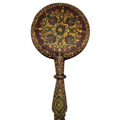 Hand mirror made of walnut wood – Painting design (Tazhib)
