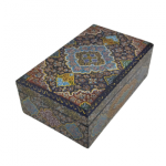 Walnut wood jewelry box, adorned with traditional miniature painting in Tazhib (illumination) style.