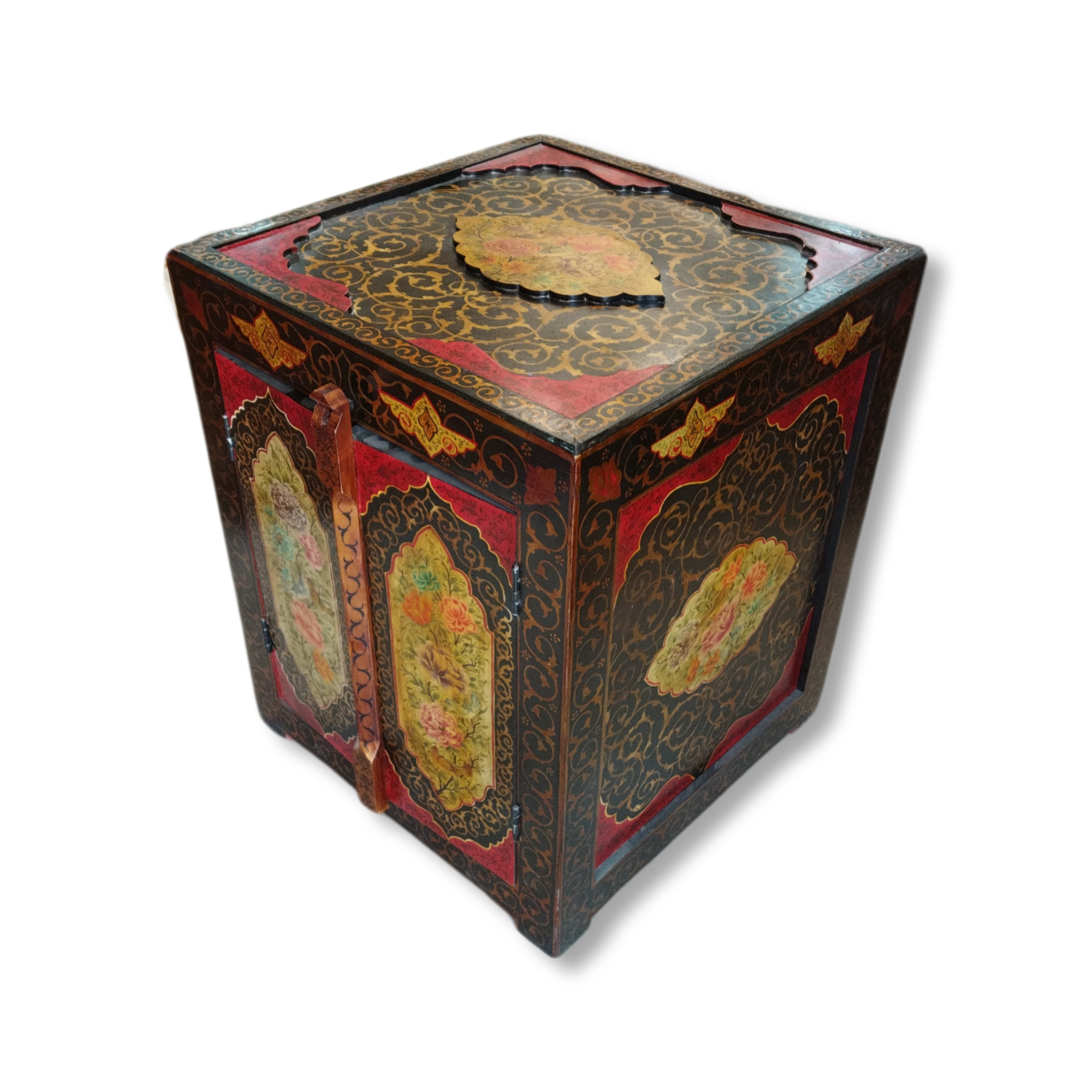 In the past, street vendors used this type of box (called “Kharak”) as a cash register. When traveling to towns or villages across Iran, they would tie it with a rope to their horse or donkey.