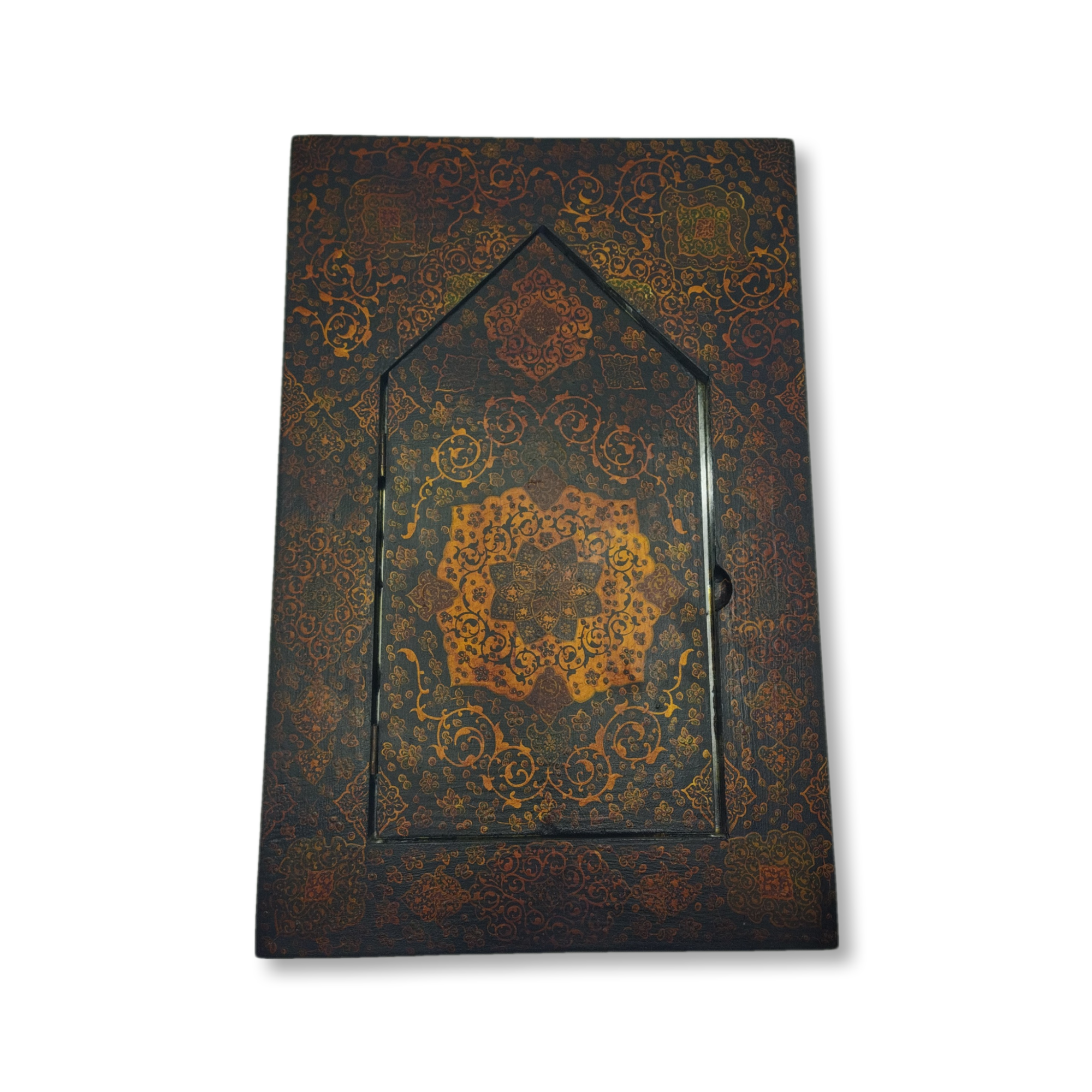 Antiqued wall-mounted mirror with door – Painting design (Tazhib)