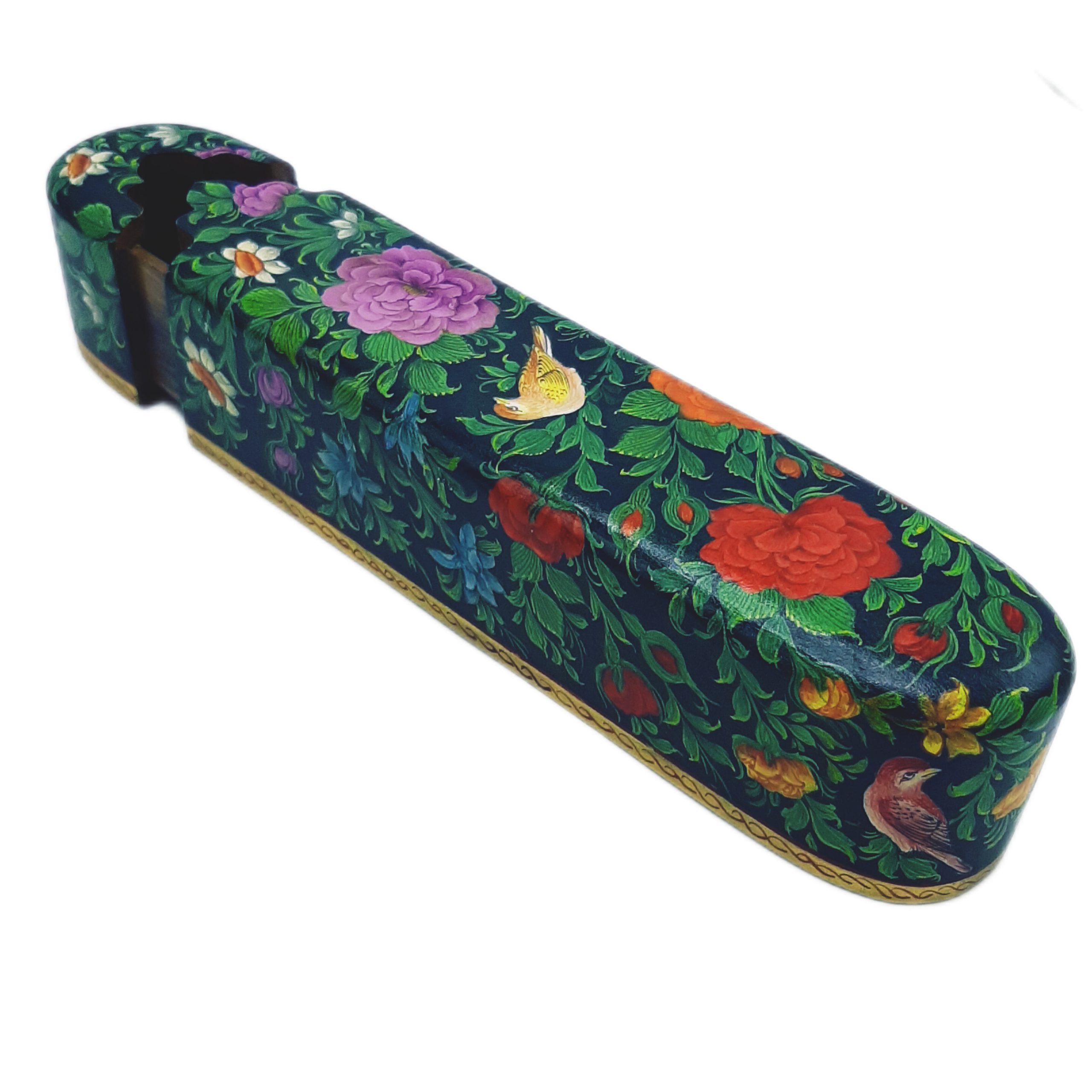walnut wood pen case flower and bird design