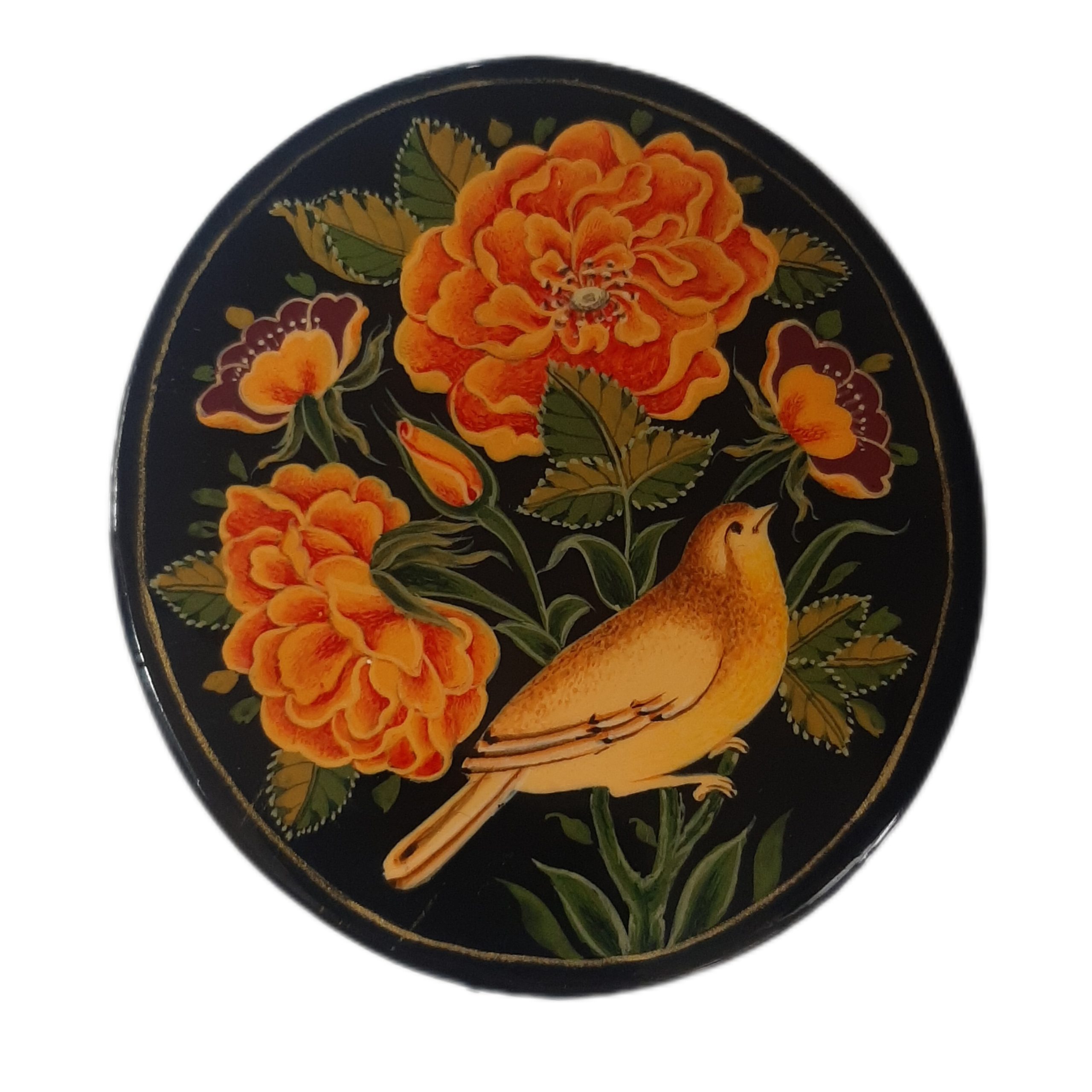 Pocket mirror made of walnut wood – Painting design (Flower and Bird)