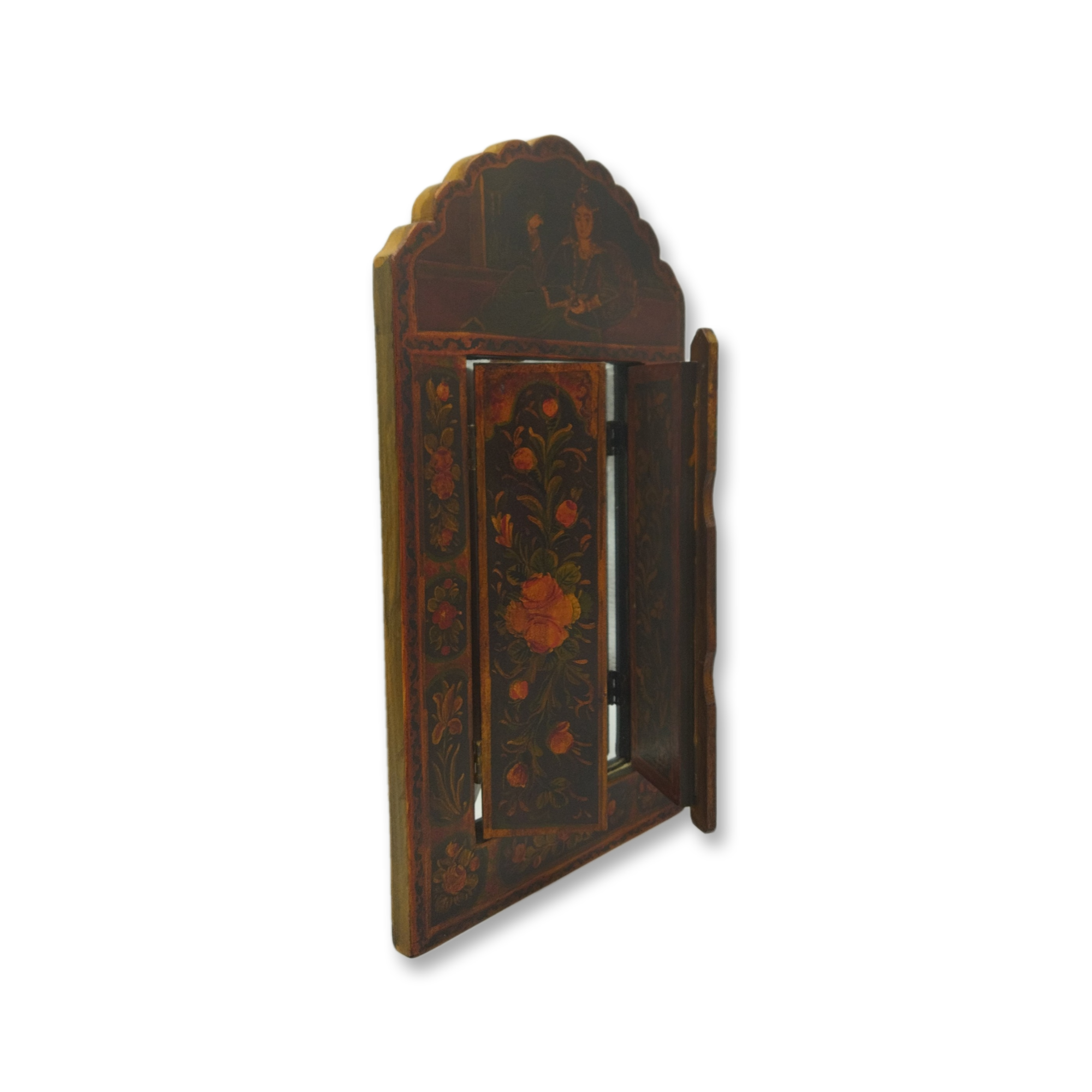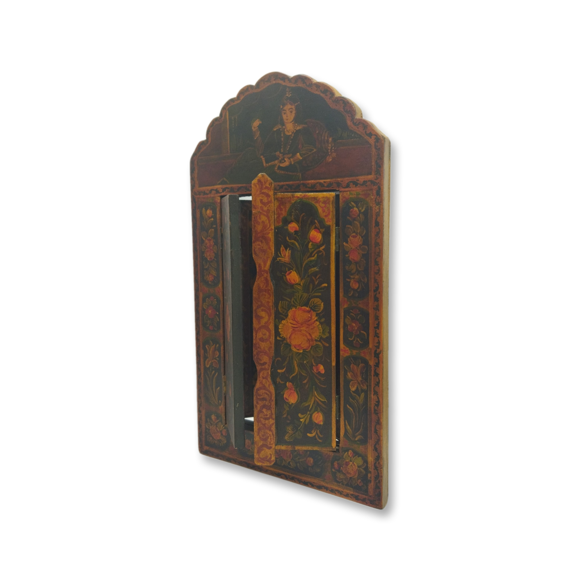 Antiqued walnut wood wall mirror – Painting design (Qajar portrait )