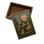 Wooden playing card box with Flower and Bird design