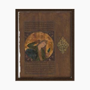 Miniature painting on paper and gold leaf (Tabriz style – Safavid courtiers)