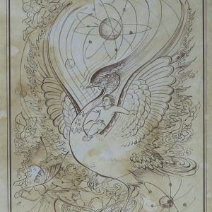 Miniature painting on paper, inked – Design (Zal and Bird)